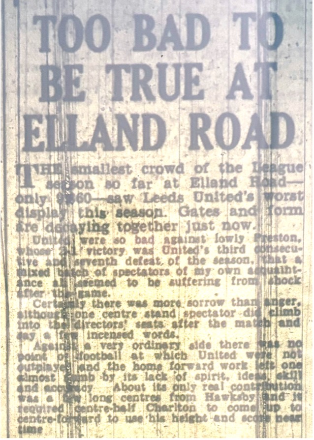 Francis display certainly seems to have been the highlight of the day, the same report opens with the line “Thanks heavens there were six goals to decorate an ill-starred and ugly game”, goes on to heavily criticise Leeds “halves” (midfield) and also mentions that the attendance was poor at 19,000, the lowest of the day for Division 1. How times change.
