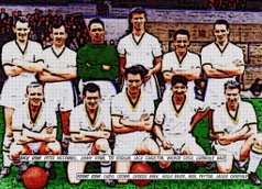 There is a very good reason for not much being made of the “official” kit change under Jack Taylor, it had been used before. There are photos of Leeds during a pre-season tour of Scotland in1958 using a white kit (A young Jack Charlton appears in this photo) and in fact the all-white strip was used as the change kit during the 1958-59 season.[6] The white kit had been around since the mid 50s
