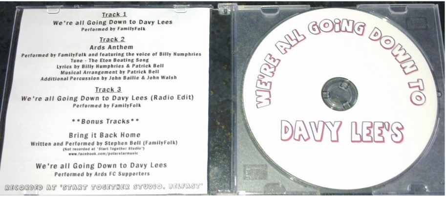 “We’re all Going Down Davy Lees” was a favourite song of Ards FC fans and became a club fanzine. Both were named after a Chinese takeaway in the town which a group of fans would frequent after games. The restaurant closed in 2008 after 30 years which ages the fanzine but there is a lovely article about visiting for one last time here. “Unfortunately”, I have been unable to source a copy of the CD that was available to add to the play list. https://scrabopower.wordpress.com/2008/04/15/we-all-went-down-to-davy-lees-for-the-last-time/
