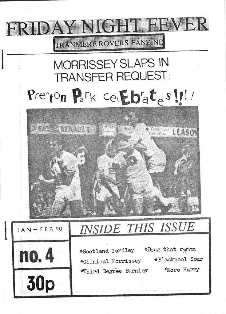 The Bee Gees Stayin’ Alive appear courtesy of Tranmere but this is not sarcasm about the club’s plight over the years, it’s because they had a fanzine called Friday Night Fever, an obvious pun as they played on Friday nights.