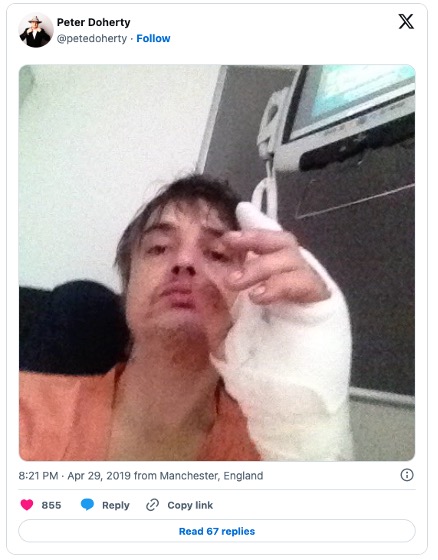 [6] https://www.theguardian.com/music/2019/may/01/pete-doherty-hospitalised-following-hedgehog-injury