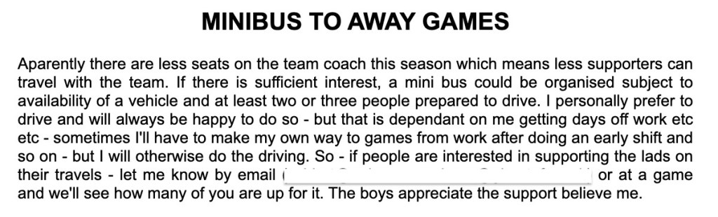 Not enough for you? then how about this please concerning minibuses to away games shared with the players. A vivid reminder that if you’re worried about your club providing tickets to some schools for a game expected to be a sell-out you’re not really focussing on the right things.