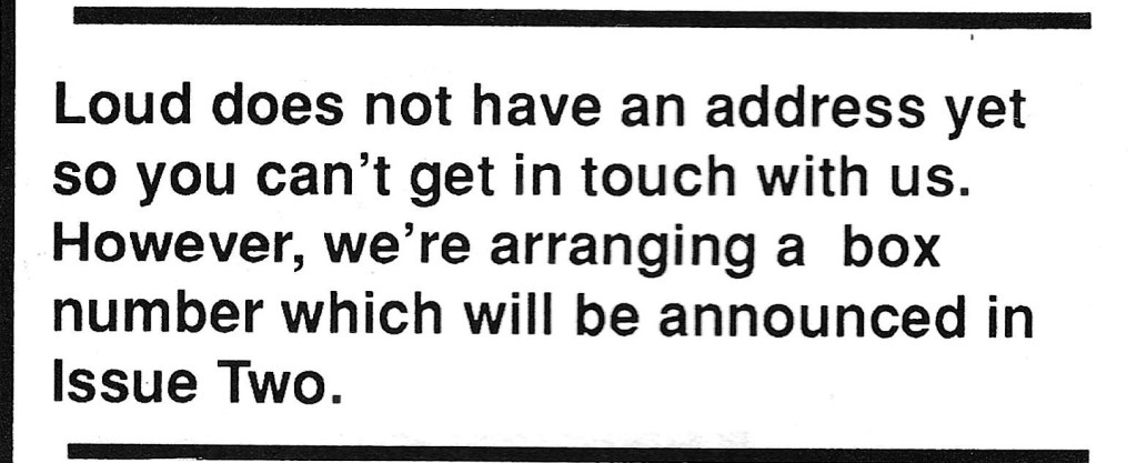 I don’t know that much about Loud, but I’m fairly sure they didn’t like Colin Moynihan. They were also classically organised like many fanzines early in their life, you couldn’t actually contact them as they had no address.