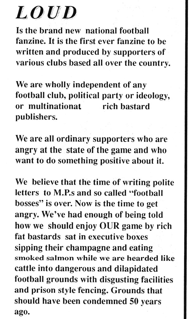 There was a lot of opposition from clubs and most fanzines stated they had clear aims which were as very much club related but influenced by broader issues such as hooliganism or ‘mismanagement of the game’.