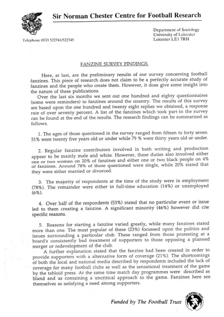 This 1989 study of fanzines tell us much about fanzines and there are a few surprises. It’s a relatively small subset but still an interesting dive into the genesis of football fanzines.