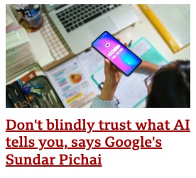 An interview with the CEO of Google appeared on the BBC this week, interesting only for the fact that one tech’ company is finally coming clean on what utter rot AI is when you are searching for facts or even vaguely clean information on many things. This has been clear to many people for a while, in particular the large community of people who research fanzines (1 – Ed)