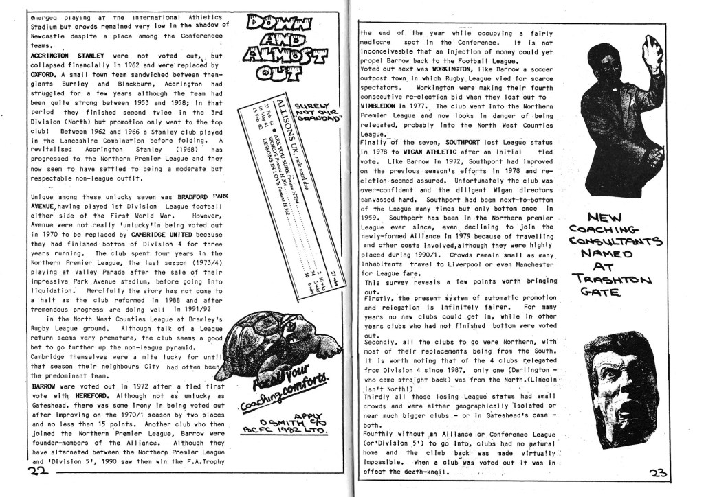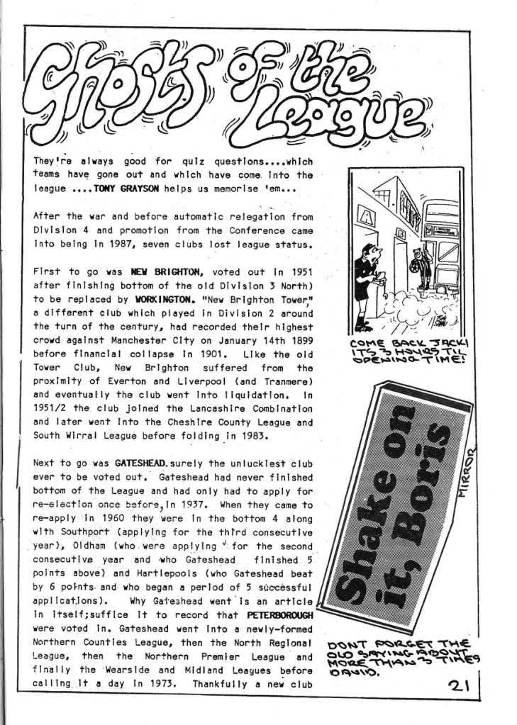 Fanzines weren’t all just jokes and rants, in most fanzines you would find thoughtful pieces even if they were very local and focussed on the team the fanzine supported. There were also many great little pieces like this, also From The Trumpton Times issue 1.