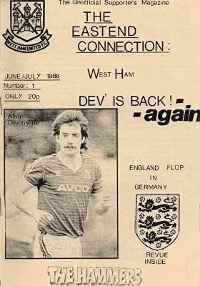 Unfortunately for Simon this came shortly after another fanzine venture of his “The Eastend Connection” folded after two editions. It had a modest first edition print run of 75 copies but sold out on the first day at Sportspages. The 24-page second edition rose in price by 5p to 25 pence and had an increased print run to a sensational 125 copies. However, the fanzine then folded when West Ham threatened legal action against the editor for using the Hammer’s trading name and club crest.[1]