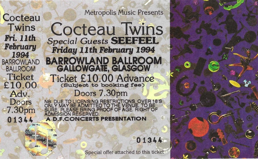 Talking of art when I opened my copy of this fanzine this ticket dropped out. The previous owner had clearly been a music fan of some distinction, not only buying and carefully storing this great fanzine but also attending Barrowland to see the Cocteau Twins in 1994. What a year!. Just look at that ticket though, from a distant time when tickets were art, not a bar code. <Sigh>