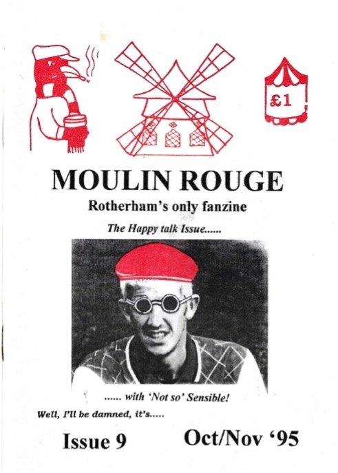 Rotherham’s Moulin Rouge issue 9 from October/November 1995 contains so many things that I think make up a great piece of cover art. The hand drawn logos, the reference to music and the joke in both the issue and fanzine name.