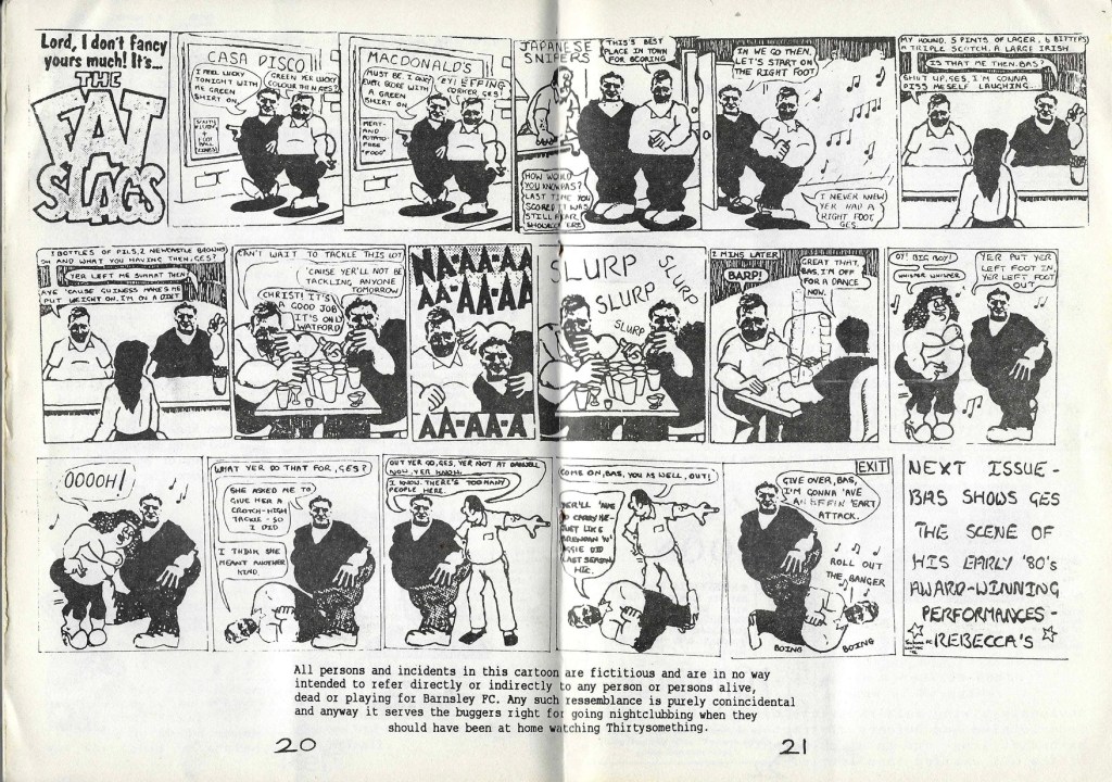 There is blatant copyright infringement as you could expect from all self respecting fanzines, this time The Fat Slags are a couple of players who had been caught out clubbing at some point, Ges and Bas (Gerry Taggart?)