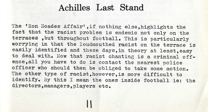 There is further comment on racism in football with a piece on how football club’s “might” be run in smoke filled boardrooms.. “I’m not sure this club is ready for the 1990s yet” hits hard.