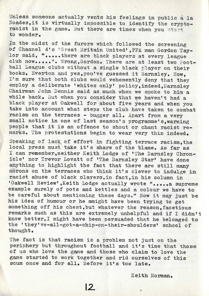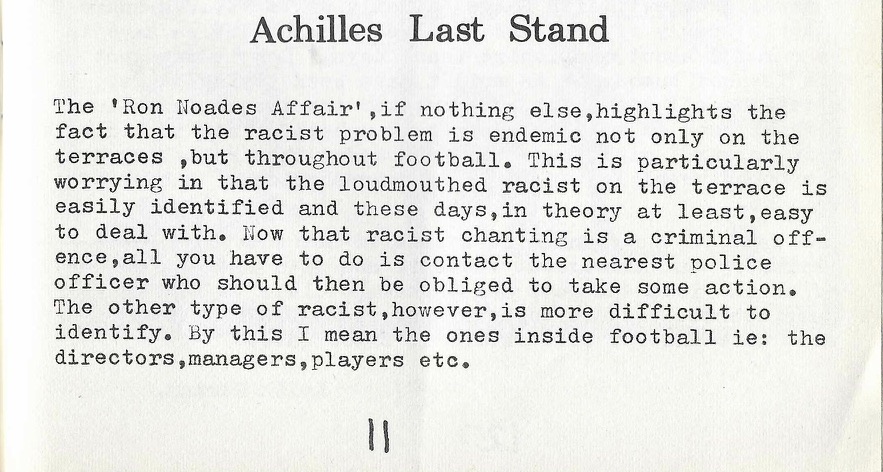 We need to learn the lessons of history, fortunately there are many more laws, organisations and mechanisms than fanzines to help nowadays. If you see or hear racism at a football ground or indeed anywhere push back and push back hard.