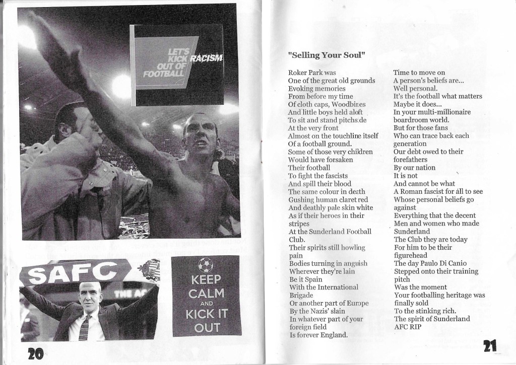 The piece “Selling your Soul” raises a question still relevant today as sports washing continues to shape the future of football in this country. The piece questions fans loyalty to a club even when the club appoints an out and out supporter of fascism as coach.