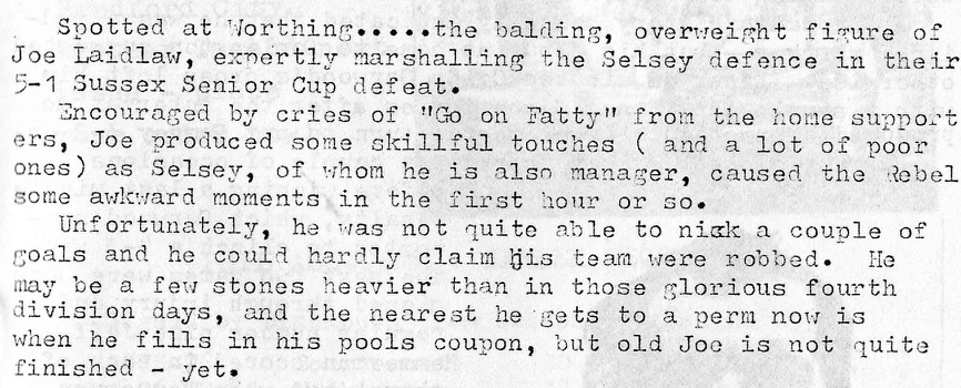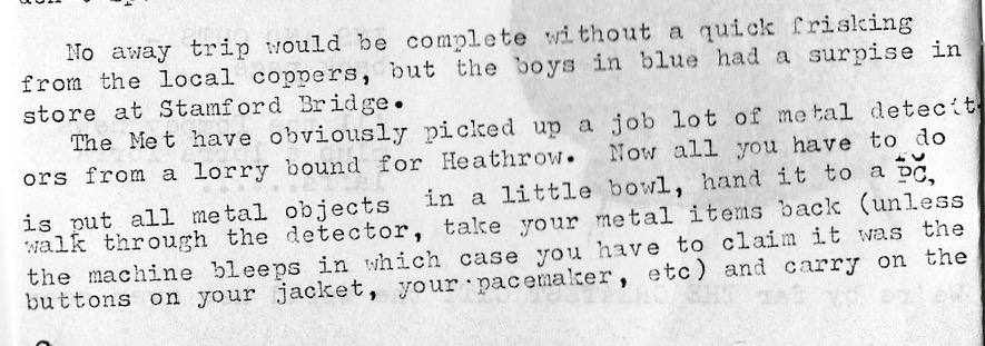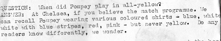 The editorial is more of just a rambling round up of what has been happening to the editor so we get news of and ex player trundling round the lower tiers despite weight gain and hair loss, metal detectors and a programme mistake re kits at Stamford Bridge..Ironically Portsmouth would wear a yellow away strip just months after this question was posted, perhaps the club marketing department were shelling out 20p for a copy of the zine?