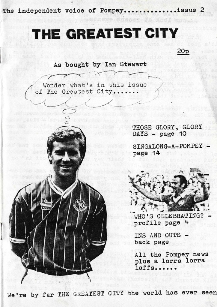 Today’s fanzine of the day is issue 2 of Portsmouth’s The Greatest City from February 1988 revealed only by trawling web sites for match results…Portsmouth IS the UK’s only island city and was “the world’s greatest naval port” according to some but that was in the 1850’s so I guess our heroes just loved Pompey.