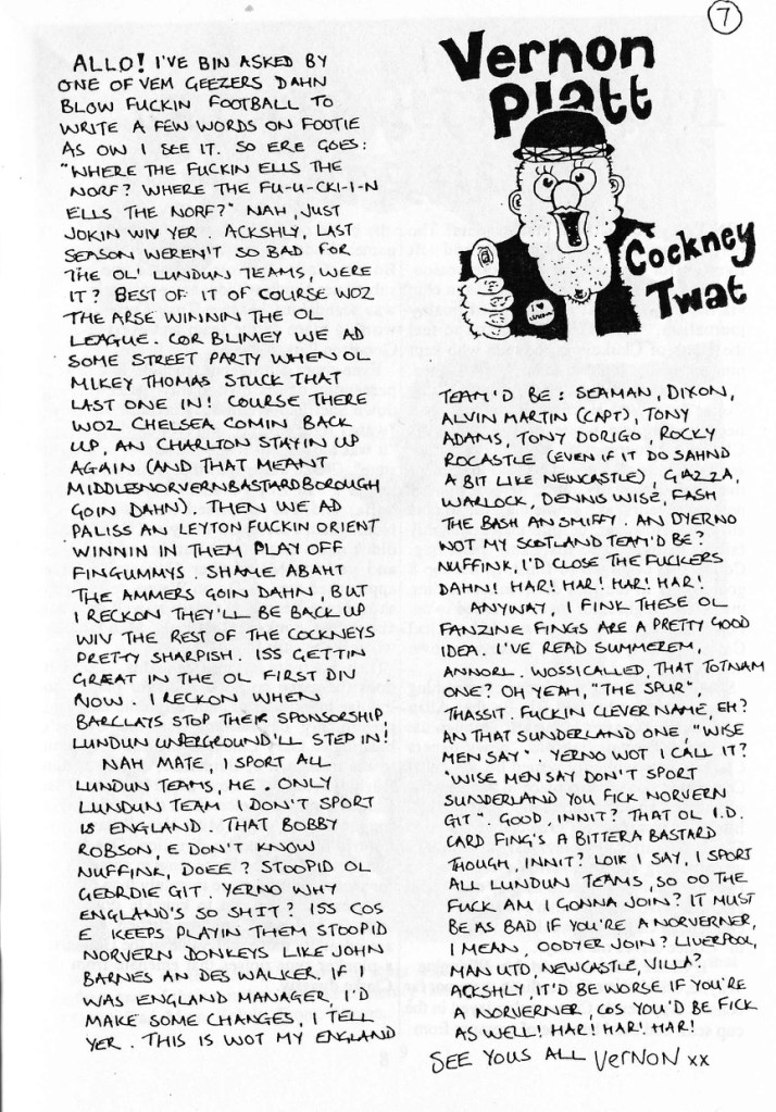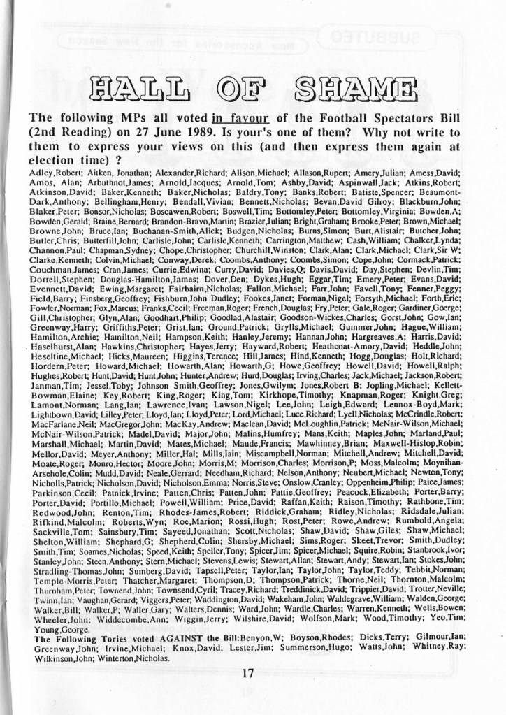 Balancing out the jollity the zine published a list of all the MPs who have voted for the Football Spectators Bill. Incredibly, 13 Tories against the bill…