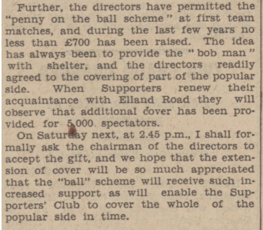 Ignoring the print register on that double spread, when I get round to writing my “Has Anything Changed?” blog I’ll compare and contrast stuff like this to the contents of this letter from the Leeds United supporters club who had been asked by the club to pay for a roof over part of Elland road…in 1932!