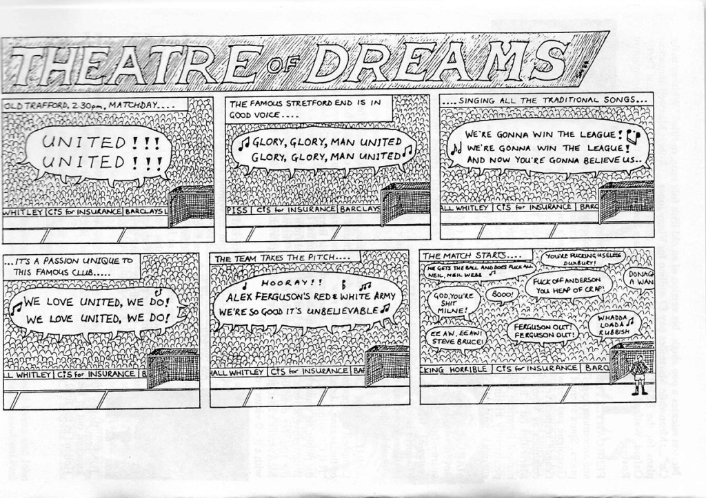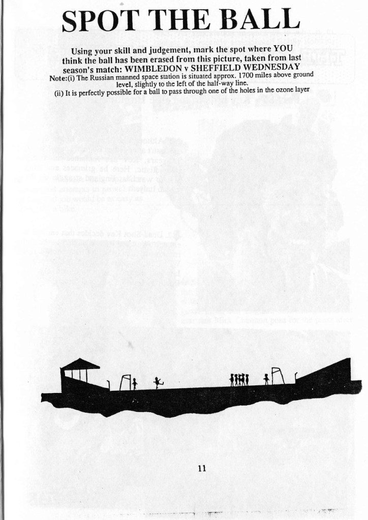 Back to Blow Football and a couple of tremendous cartoons, a great spot the ball contest and another predicting the rise of the Prawn sandwich brigade at Old Trafford (with some cheeky changes to the ad boards.)