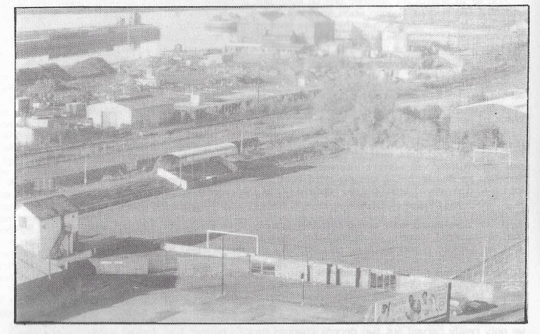 More importantly sooner or later he confirms the presence of floodlights despite the terrifically bad photo from the fanzine being unclear. “A couple of incomplete sets of enclosed halogen holders with…most of them pointing skywards” Perhaps they doubled up as approach path lights for the airport. Better than the toilets anyway.