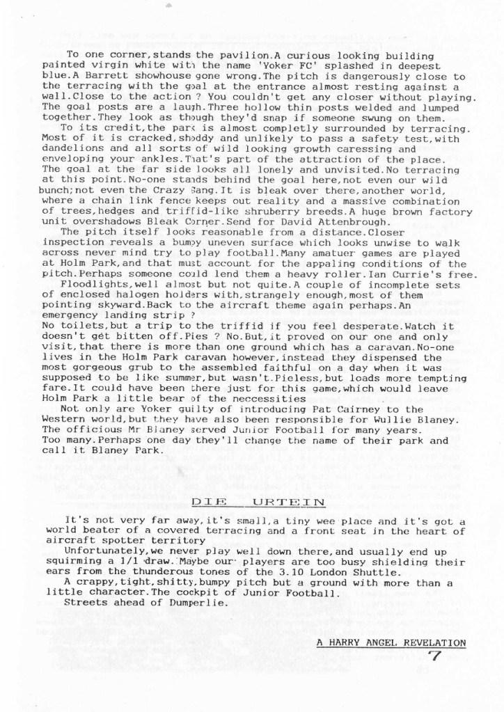 These are the days well before drones were even a twinkle in some idiot’s eye but we soon find out from the brilliant Harry Angel the reason such a superb photo is available as he jostles for space on the terraces with plane spotters. The terracing cover that looks like an aircraft hanger almost certainly is and one of the weird nickname are never fully explained.