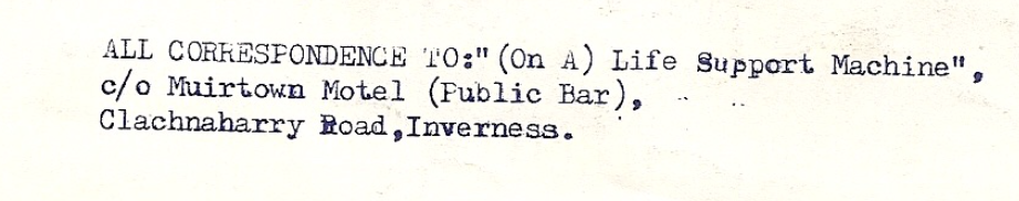 As an aside LSM (Life Support Machine) the magnificent fanzine for Caledonian FC also had it’s address in a pub, more specifically, the public bar of the Muirtown Motel. If you know of any others let me know.