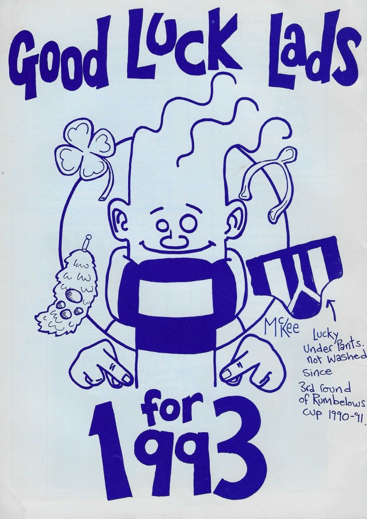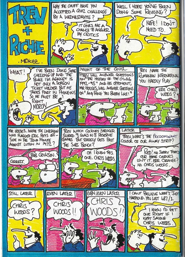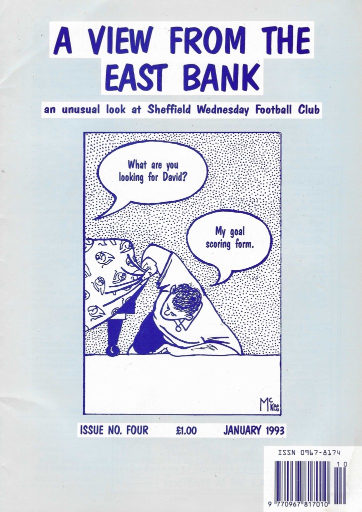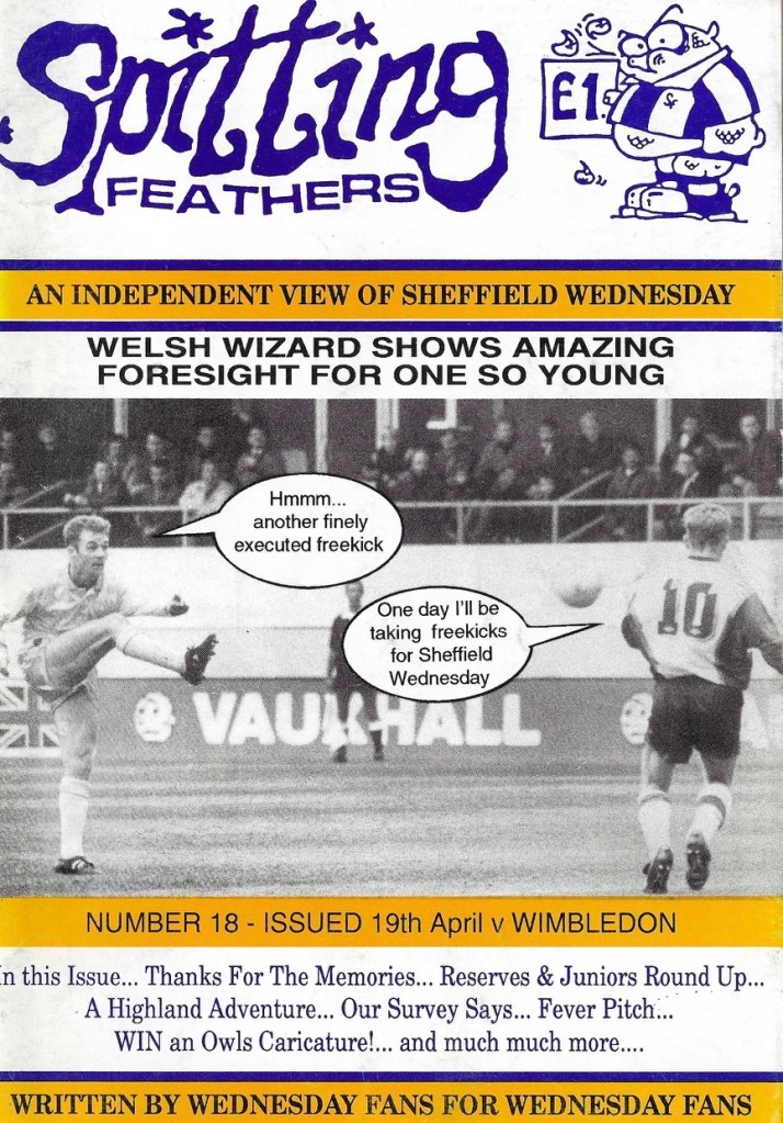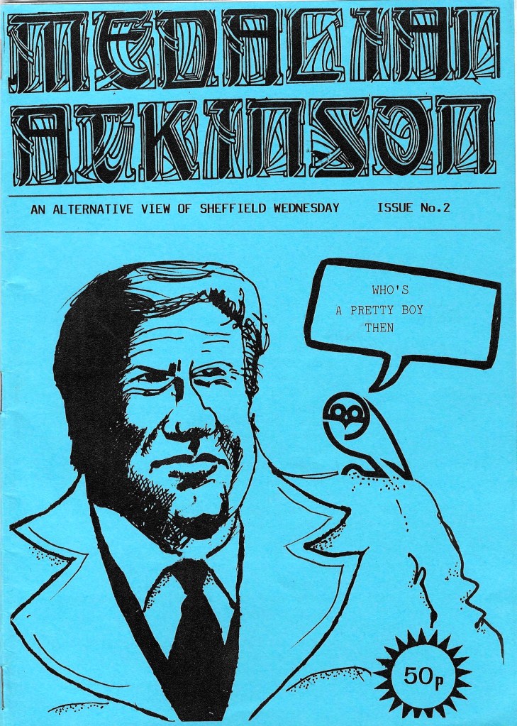 We’ve found evidence of 17 fanzines for the Owls with names ranging from the simple Out of the Blue and All Wednesday to the sublime Boodle – Taking The Wednesday Into Insanity. From Blue and White Wizard to Dink and Cheat! from Home Alone to Medalian Atkinson