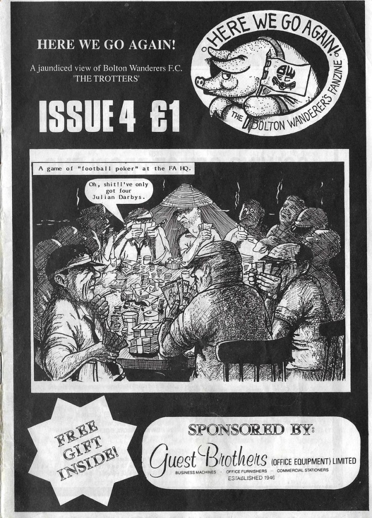 The quality of the cover of today’s #FOTD Here We Go Again issue 4, a Bolton fanzine from early 1992 gives notice that this is a quality production. Great logo, impressive satirical cartoons and news of a free gift.