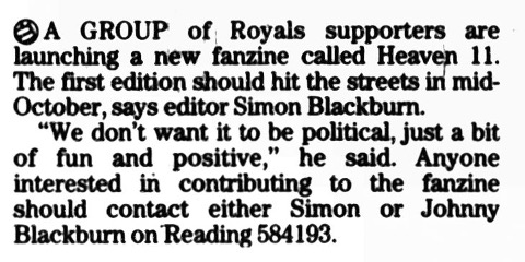It’s hard to imagine now but newspapers were a very good way of getting publicity at a local level as this announcement of the arrival of Heaven 11 from the Reading Evening Post in September 1994 shows.